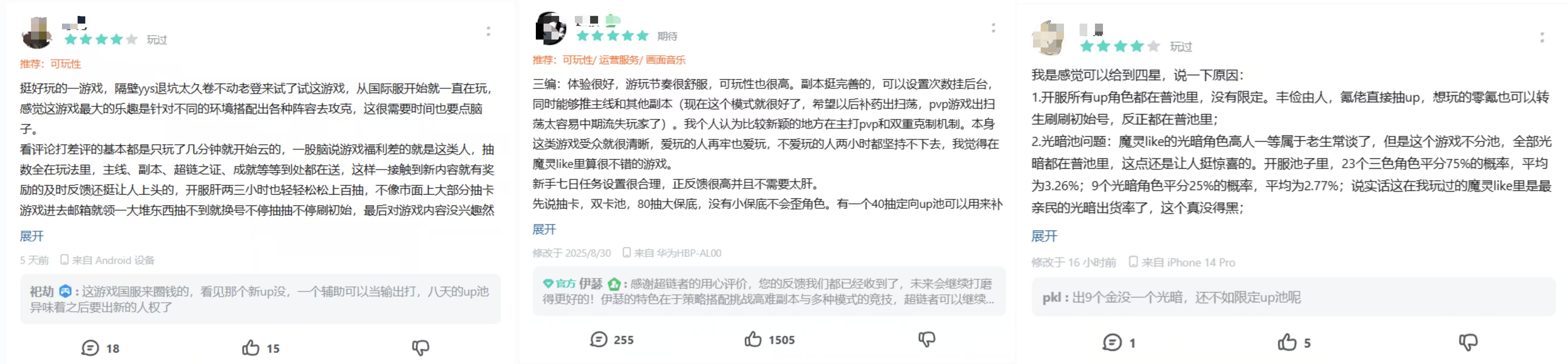 给出好评的玩家认为这款游戏节奏很舒服,氪度方面可以接受,策略性和游玩深度可以。