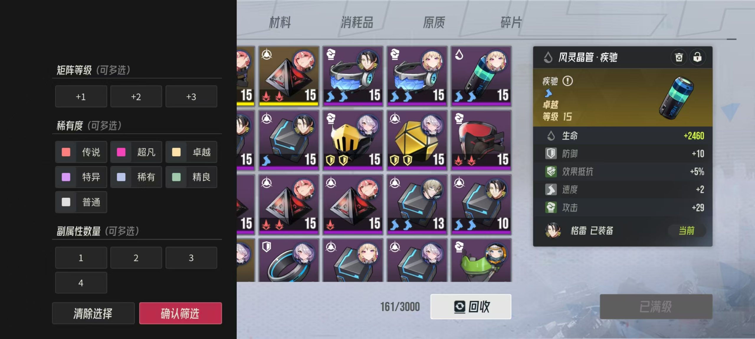 虽然表面上来看,游戏养成主要就源器(装备)、智壳(宠物)、角色的潜能和等级四部分。但每一部分的养成还是很有深度的,以源器为例,有7个稀有度等级,21种矩阵分类。每个源器会带有1~3个矩阵标志,根据人物装备矩阵标志总数量会激活不同的加成效果。此外,源器还有4个随机词条。