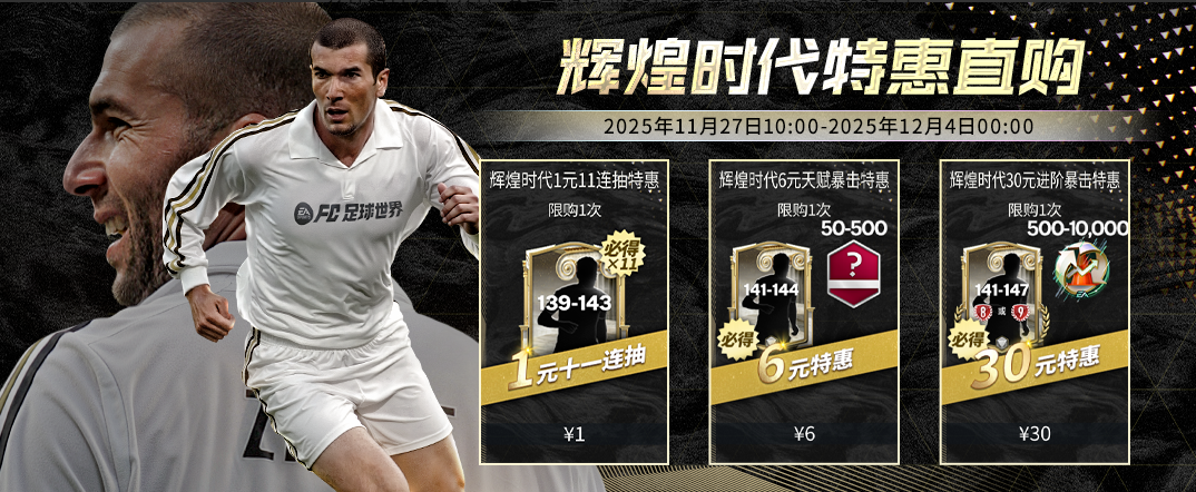 为了致敬齐达内传奇生涯,《FC ONLINE》准备了多重福利好礼。11月29日至12月7日期间,将有胜利币兑换商城全场五折,累计登录送幸运金币卡,以及每日比赛领齐达内球员包和金币卡等活动送给所有玩家。